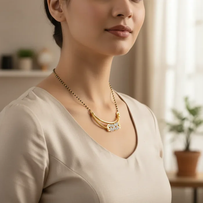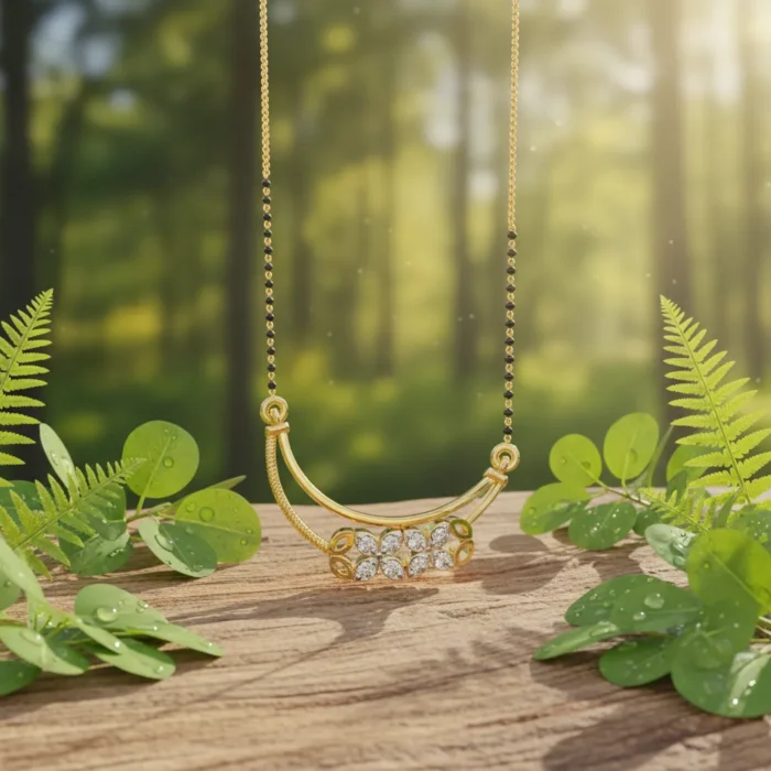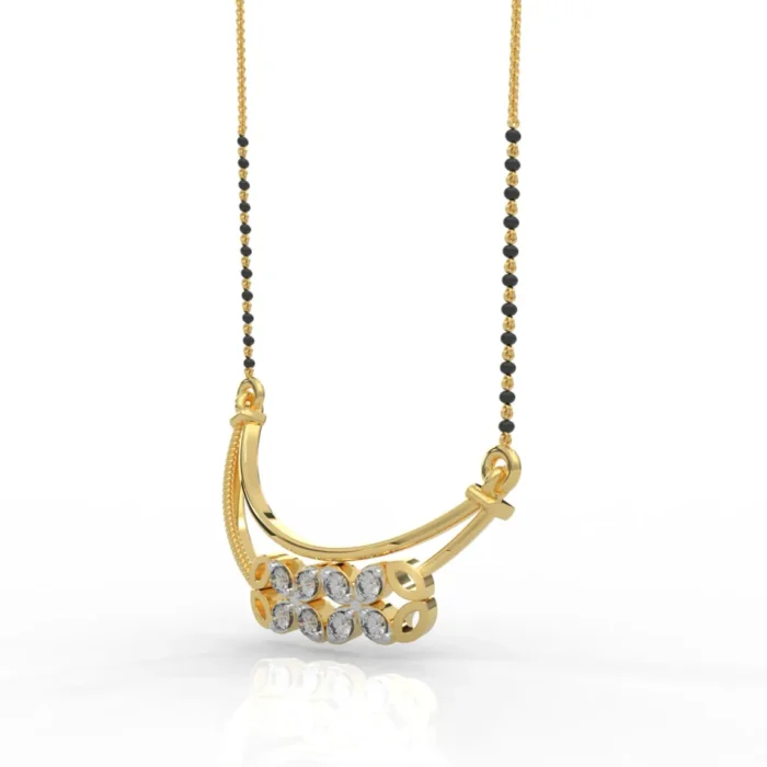 The Tanmaniya design, a traditional symbol of marital bliss and commitment, is reimagined with a contemporary touch in this exquisite pendant. Its delicate yet impactful presence makes it perfect for daily wear or special occasions, effortlessly enhancing any outfit. Whether as a cherished gift for a loved one or a well-deserved treat for yourself, this diamond pendant is an investment in enduring style.